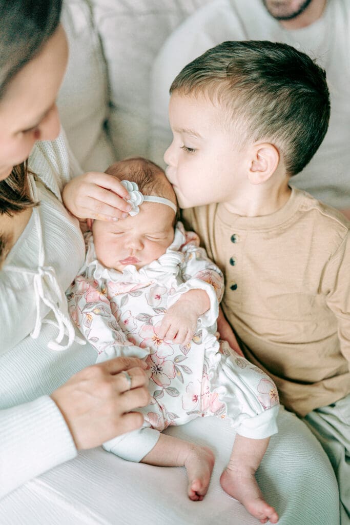 Let them know their role is a big deal—whether that’s giving baby kisses, holding their hand, or snuggling close. I’ll guide them gently during the session, but when they feel like they have a purpose, they naturally lean in.